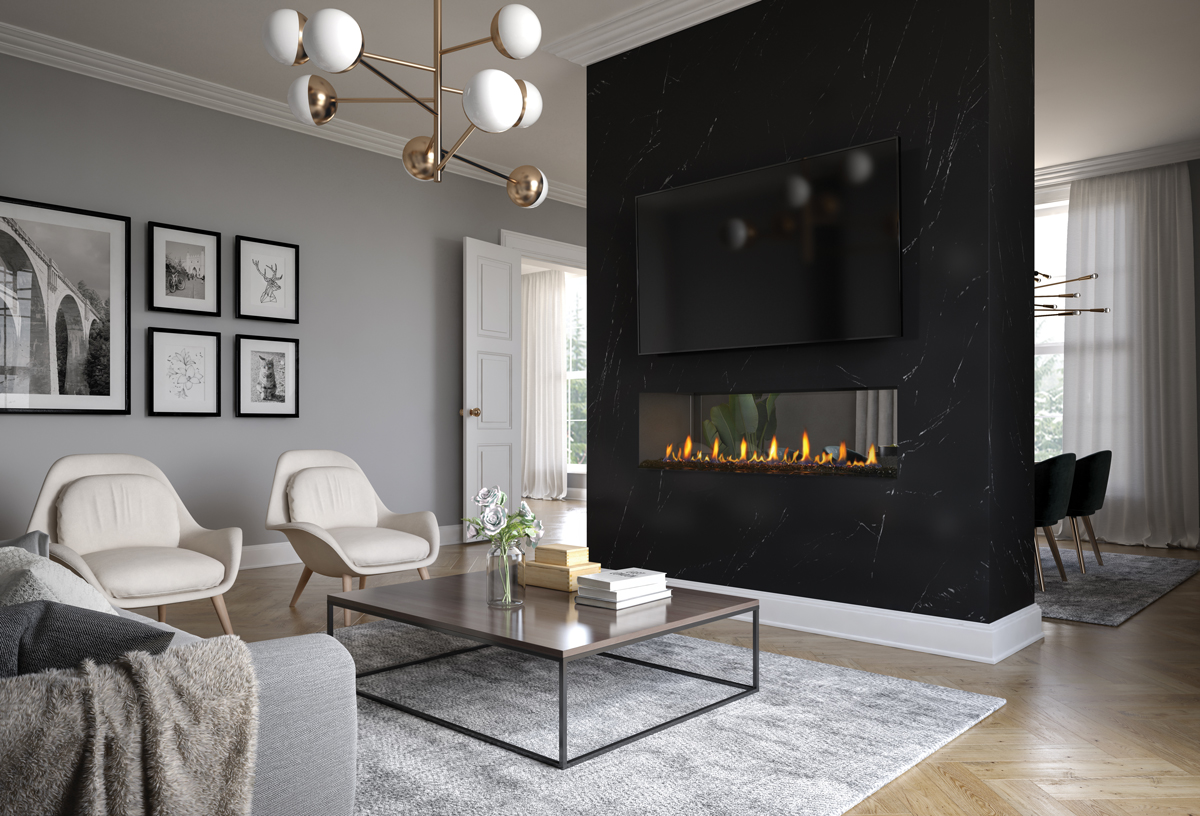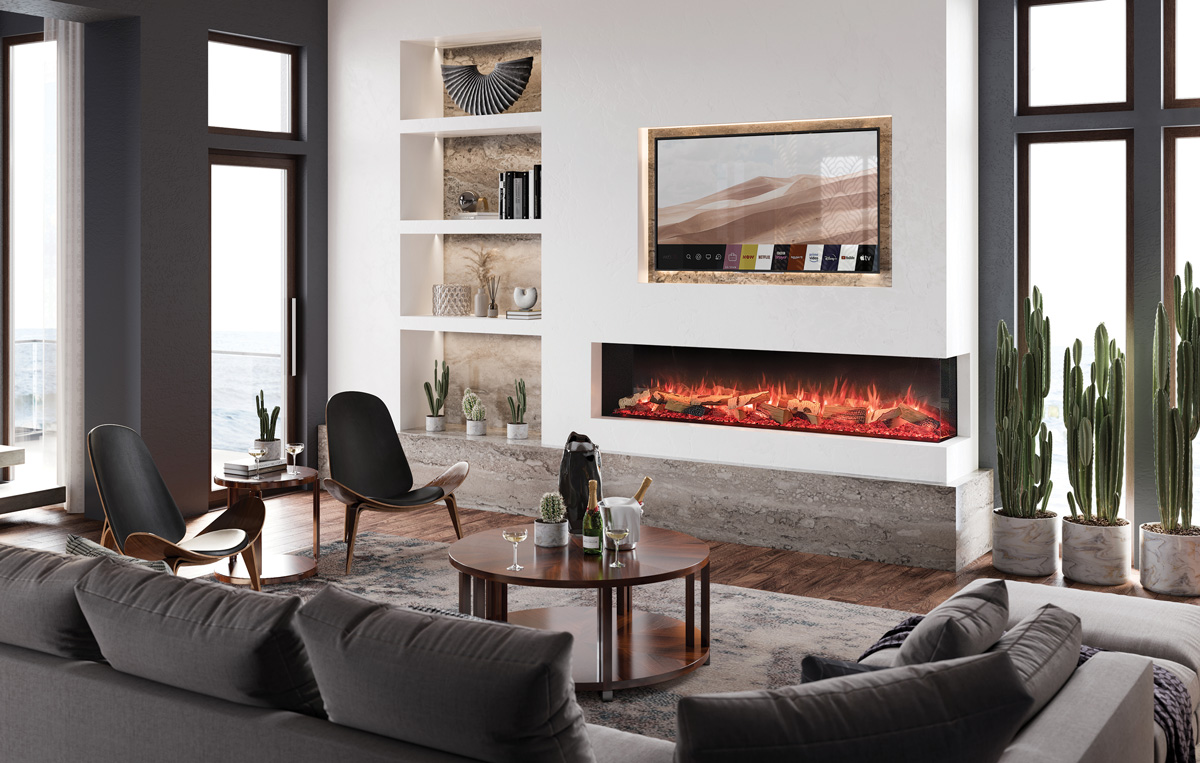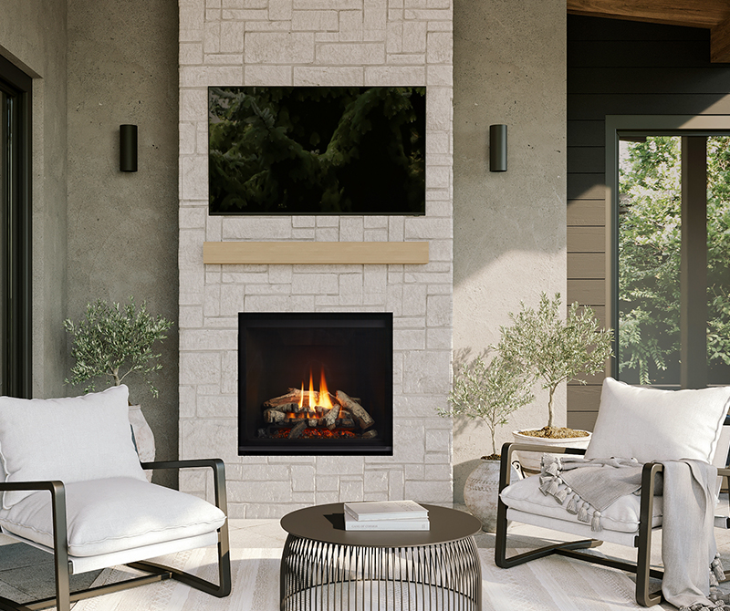 This advanced system keeps surfaces cool, allowing you to install a TV, artwork, or wallpaper right to the edge of the fireplace with confidence.